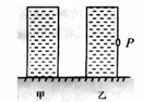 如图甲,一容积为0.5m3、底面积为0.5m2的容器装满水后密封,容器内水的质量是______kg,水对容器底面的压强为_____Pa.如图乙,若在容器侧壁处开一小孔P,发现水不会从小孔流出,这是由于_____________
