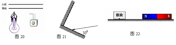26.(1)如图20所示,请你用笔画线代替导线将开关和螺口灯座连入电路中,使开关能控制灯泡。