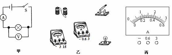 2.如果闭合开关时,电流表的示数为0.28A,请在丙图中画出指针位置和所用量程。