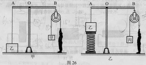 若用物体丙替换物体甲,并在物体乙的下方连接一个弹簧,如图26乙所示,当轻杆AB在水平位置时,整个装置处于平衡状态,弹簧对物体乙的作用力为