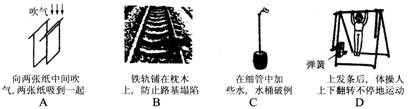 为配合铁路第六次提速,公安部交管局再次公告,指出在火车站站台上候车的乘客应站在lm安全线外.图中各现象的原理与公告内容所含物理知识相同的是 ( )