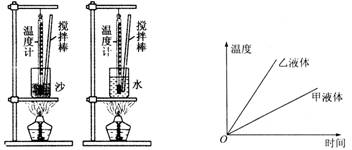 7.下图是小明和小华同学探究沙子与水吸热升温快慢的实验装置.设计实验方案时,他们确定以下需控制的变量,其中多余的是 ( )