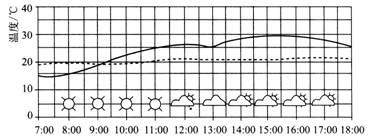 小明与家人一起测量了某一天不同时刻他家附近的气温和水池中的水温,根据记录的数据绘制成温度随时间变化的图象,如图所示,从图象中可看出,水温变化的幅度比气温变化的幅度