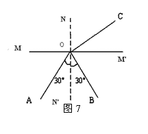 16.如图7,一束光在空气和玻璃两种介质分界面上同时发生反射和折射,其中__________是折射光线,反射角等于_________,MM’上方是__________(选填“空气”或“玻璃”)。