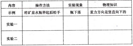 请利用一瓶矿泉水,设计两个不同的物理实验,并完成下表