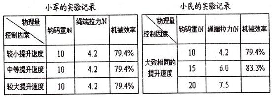 (2)分析小军和小民的实验数据,得到的实验结论是:在滑轮组一定的情况下·它