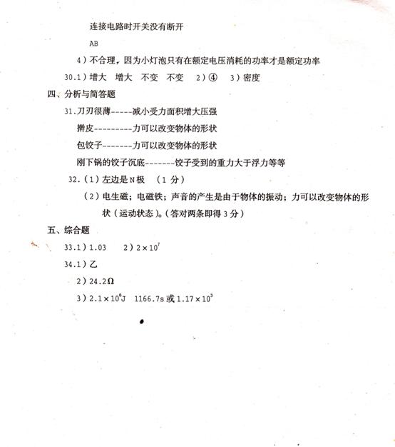 (2)请你写出电铃工作时所涉及到的物理知识(写出二条即可)。