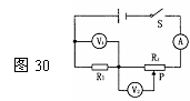 如图30所示,电源电压不变,闭合开关S,当滑动变阻器的滑片P由右向左移动时,三只电表V1、V2、A的示数变化情况( A )