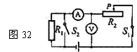 5。 如图32所示电路,电源两端的电压一定,开关s1闭合,s2断开。如果使电压表和电流表的示数均增大,则下列操作一定可行的是( C )