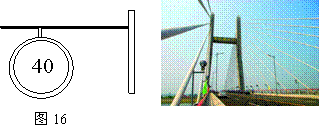 (4分)固城湖大桥位于淳溪镇筑城圩西南角,横跨固城湖,大桥全长536m,桥面宽18m,行车道宽14m,两侧人行道宽2m,主桥采用H型独塔双索面斜拉结构,满足三级航道要求。在桥边有一交通标志牌如图16所示,在遵守交通规则的前提下, 一辆小车通过全桥至少需要多少时间?