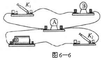 如图6-6中的灯泡在通电时,灯泡能被点亮。请在下面横线上填写当开关K1、K2处于以下状态时,灯泡A、B的亮熄情况:(1)K1断开K2闭合时