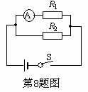 8.在如图所示的电路中,R1=10Ω,R2=20Ω,闭合开关后,电流表的示数为0.3A。则电阻R1两端的电压为________V,通过R2的电流是________A。