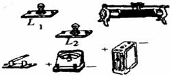 2.图中给出了几种元件,(1)在图上用笔画线表示导线把电路元件连接起来,要求L1与L2并联,并且用电流表测灯L2的电流,用滑动变阻器控制灯L1和L2的电流;(2)在下面方框中画出所连线路的电路图。