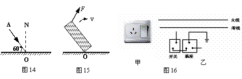 26.(1)画出图14中光线AO经平面镜后的反射光线,并标出反射角的大小。