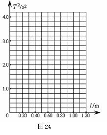 (2)请根据表中数据在图24中作出单摆周期的平方T2与摆长l的关系图像。