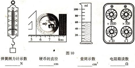 读出图10所示各测量工具的测量值,并将结果填入空格处: