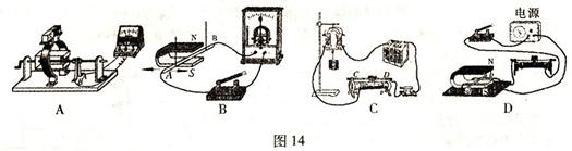 图14是有关电与磁实验的装置图,其中用来研究电磁铁磁性的是