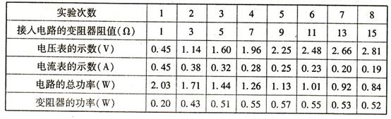 (1)根据表中的数据可知,实验时变阻器