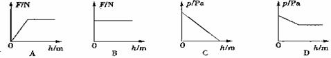 8、一位跳水运动员从他刚接触水面到逐渐浸入水面以下的过程中,所受到的浮力F和水对他的压强P随深度变化的关系图像如图所示,其中正确的是: ( )