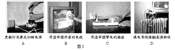 5、如图3所示的四种做法中,符合安全用电要求的是( )