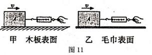 (3)如图11乙所示,在长木板上固定好毛巾,把木板平放在其表面上,重复步骤(1)的操作,