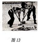 (4分)2010年冬奥会在加拿大的温哥华举行。如图13所示是冬奥会上冰壶比赛的一个场景。当投掷手用力将冰壶投出后,冰壶在冰面上不断向前运动。同时同队