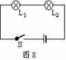 将额定电压相同的两个灯泡L1、L2串联后接入电路中,如图8所示。接通电路后发现L1要亮一些,则下列判断正确的是( )