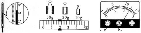 21.(1)写出下列读数:图8所示体温计示数是________℃,天平读数是________g,电压表读数是________V。