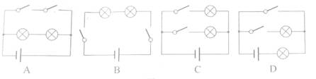图1所示是一个简易“选答器”.一个问题有两个可选择的答案(a)和(b),与它们对应的灯分别由两个按钮(开关)控制,选择哪一个答案就按下哪一个按钮,对应的灯就亮,那么图2所示各电路图中符合要求的是
