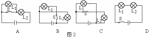 4. 如图2所示的电路中,开关只控制灯L2的电路是