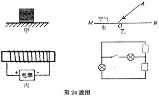 (2)如图乙所示,MN为空气与水的分界面,AO为入射光线,入射点为O,在图中画出折射光线并标出折射角