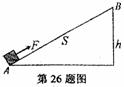 26.(8分)如图所示,斜面长S=10m,高h=4m.用沿斜面方向的推力F,将一个重