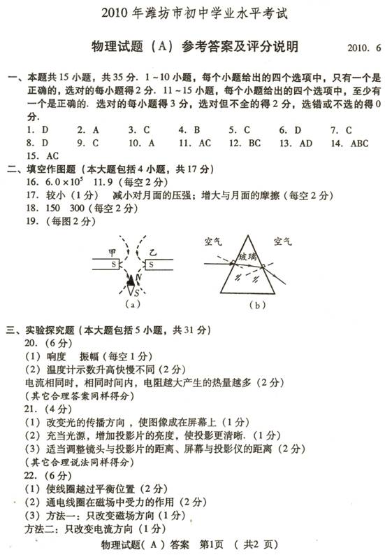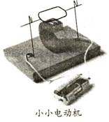 22.(6分)如图所示,是某互助小组制作的一台简易电动机.用硬金属丝做两个支架,分别与电池的两级相连,用漆包线绕成一个矩形线圈,以线圈引线为轴.用小刀刮去轴的一端全部漆皮,另一端刮去半周漆皮将线圈放在支架上,磁体放在线圈下.接通电源并用手轻推一下线圈,线圈就会不停的转动起来.请问: