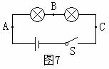 20.在“探究串联电路中电流大小的关系”实验中,某同学用电流表分别测出如图7中A、B、C三处的电流大小.为了进一步探究A、B、C三处的电流大小的关系,总结普遍规律.他下一步的操作应该是 ………………………( )