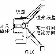 23.我们经常听到校园里扬声器(喇叭)发出悠扬的声音,如图10所示为扬声器的结构示意图.请写出扬声器工作过程中涉及到的相关物理知识(写出两个即可).