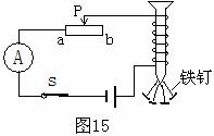 26.如图15所示,是某同学探究“电磁铁磁性强弱跟电流大小关系”的电路图.