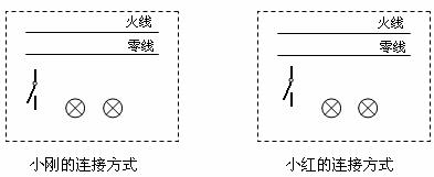 (1)(4分)他们是怎样把两个灯泡接在照明电路中的?请完成下面虚线框内的电路连接。