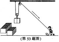 (6分)建筑工地上,工人们需要将一堆建材运到10m高处。中考资源网姜荣同学设计安装了如图所示的装置.装置中每个滑轮重l00N。中考资源网工人利用该装置每次提升一块重900N的建材,该工人拉绳子的速度是0.8m/s,在施工过程中: