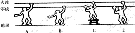 下列四种情况中,人相对安全的是(请同学们千万不要尝试做本实验)