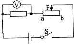 如图的电路中,电源电压保持不变,定值电阻的阻值是4Ω,滑动变阻器的最大阻值10Ω。滑片P置于滑动变阻器的中点时,电压表示数为8V;当滑片从中点向b端移动距离s后,电压表示数变为6V;当滑片从中点向a端移动距离s后,电压表示数为