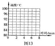 (2)请根据表格中的数据,在图13中作出水的温度随时间变化的图线。