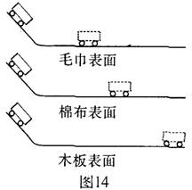 (3)比较图14中小车在不同表面滑行的最大距离,可以得出:在初速度相同的条件下,水平面越光滑,小车受到的摩擦力越 ,小车运动的越 。