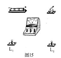 21.小刚和小丽用图l5所示的器材探究串联电路的电压关系,用三节干电池串联做电源,两只小灯泡的规格不同。