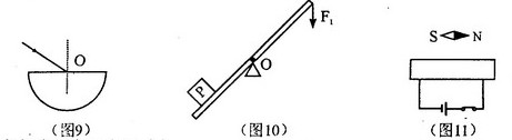 18.如图10,在外力F1作用下,物体P和杠杆均静止,请画出物体P对杠杆的压力F2对支点O的力臂L2.