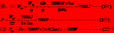 2. (2010兰州)(6分)如图23所示,物重G为2000N,斜面长5m,高3m,斜面和滑轮组装置的总机械效率为80%,若将重物沿斜面以0.2m/s的速度拉上来,求: