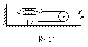 (2010梅州)如图14所示,物体A的质量m =12kg,在拉力F的作用下,物体A以0.1m/s的速度在水平面上做匀速直线运动,弹簧测力计的示数为12N,忽略滑轮与绳子的摩擦力以及滑轮、弹簧测力计和绳子所受的重力,并且绳子足够长。求: