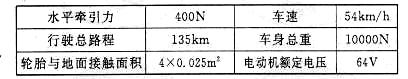 11.(2010金华)在上海世博园“低碳行动”展区展出了一系列高科技展项,其中包括我国自主创新的纯电动汽车。该汽车充足电后,在水平路面进行性能测试,记录如表所示。