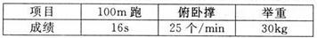 13.(2010襄樊)(5分)体育活动中也包含很多物理知识。下表是杨威同学的一次体育测试成绩