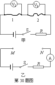 (2010江苏无锡,30题)某物理兴趣小组的同学为探究导体电阻与导体长度和横截面积之间的定量关系,设计了如图甲所示的电路.实验时他们将所选的两种金属丝接入电路1和2的位置,通过比较电压表的示数来比较电阻丝的大小.现有几根康铜合金丝和镍铬合金丝,其规格如下表所示:21世纪教育网