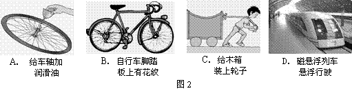 (咸宁)5.如图2所示的四个实例中,目的是为了增大摩擦的是